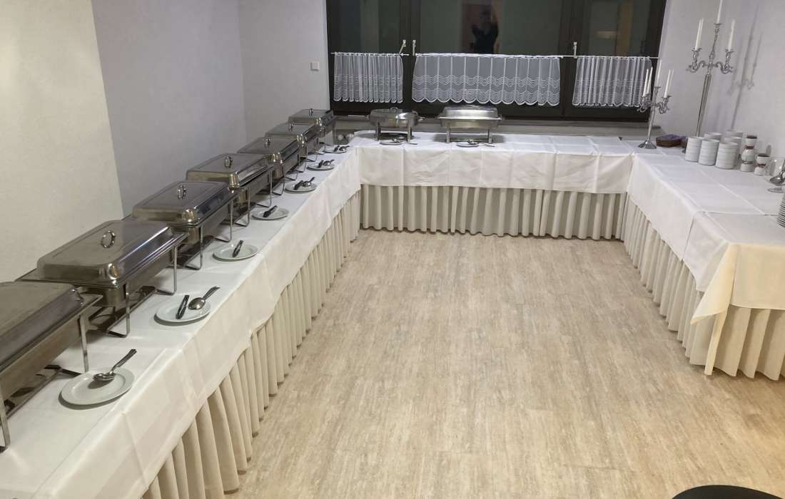 | Angebotene Verköstigung | Buffet, Sektempfang, Menü, Mitternachtssnack, Kuchenbuffet, Fingerfood, Kaffeespezialitäten, Cocktails, Grillbuffet |