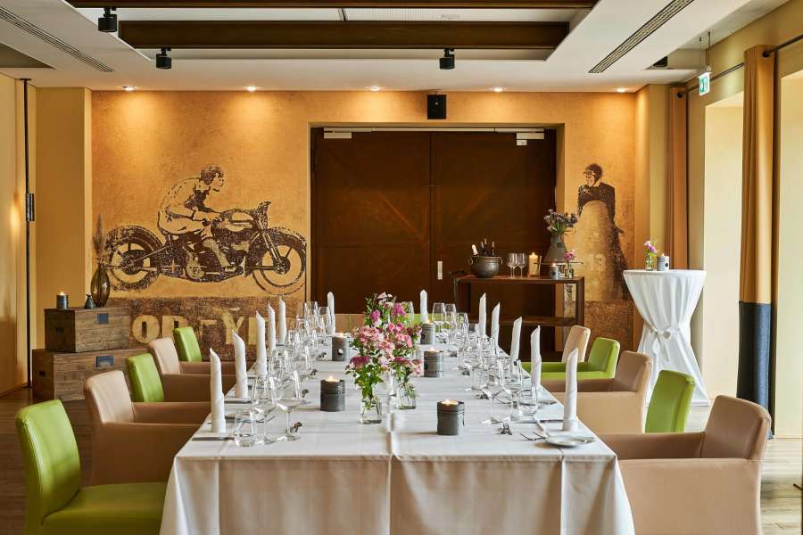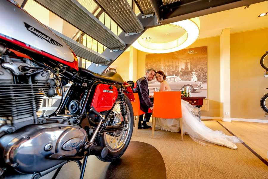 Mit dem Motorrad-Korso zum Fest, die Trauung im Freien auf dem Traum-Bike und im wandelbaren "Multifunktionsraum" feiern. Hört sich pragmatisch an, verwandelt sich aber im Nu in die Hochzeitslocation eurer Wahl, weniger als eine Stunde von Hannover entfernt. Das Highlight: Ein historischer Oldtimer aus der Sammlung des PS.SPEICHER steht euch als Hochzeitsauto zur Verfügung.