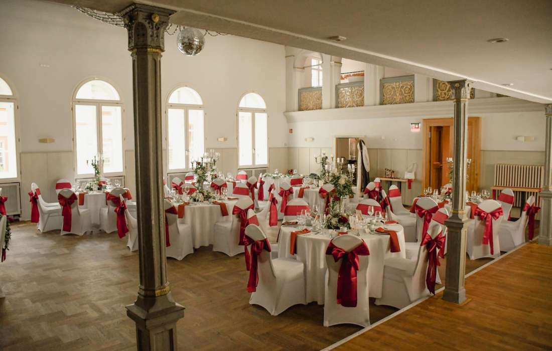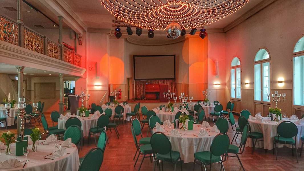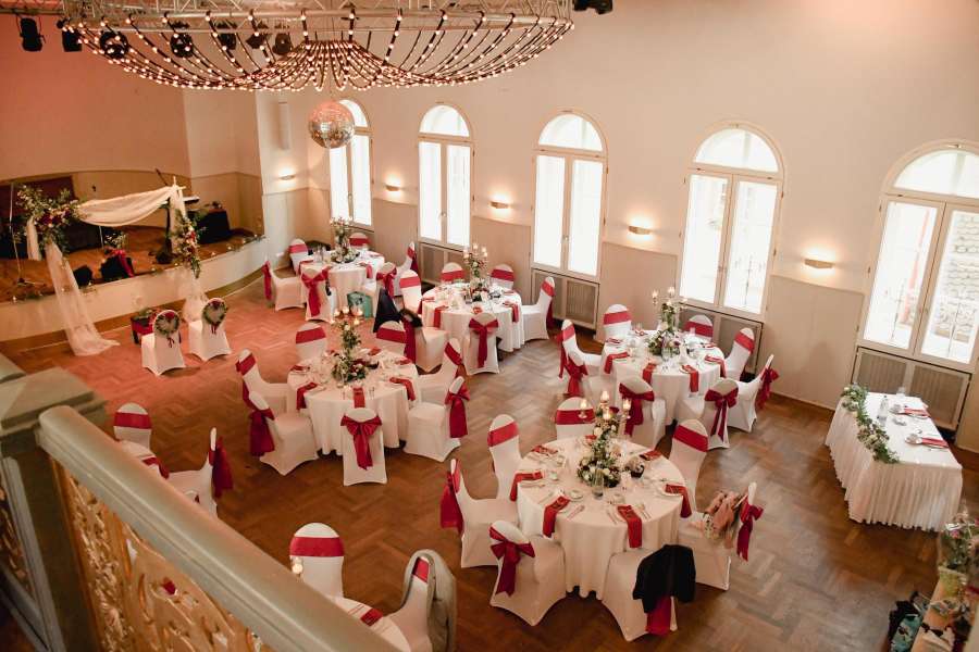Unser geräumiger Ballsaal bietet Platz für bis zu 150 Gäste und ist der perfekte Ort, um Eure Liebe zu feiern. Mit seiner eleganten Atmosphäre, modernster Technologie und einer flexiblen Raumgestaltung ist unser Ballsaal der ideale Rahmen für Eure Hochzeitsfeier.