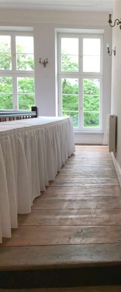 Es liegt sehr idyllisch an einem wundervollen Fleckchen Erde, von Seen, Feldern und Wiesen umgeben, in der sehr beliebten Region der Mecklenburgischen Seenplatte nahe der Müritzer Seenplatte. Lassen Sie hier in absoluter Ruhe Ihre Seele baumeln und genießen Sie bereits morgens den Blick auf unseren romantischen See mit malerischen Gutsgarten mit seinem alten Baumbestand. Mit den Füssen im klaren Seewasser oder morgens barfuß durch das taufrische Gras - so genießt man die Auszeit im Gutshaus Gross Helle und der Alltag scheint vergessen. Gerne heißen wir Sie auch in unserem kleinen aber feinen Wellness Bereich willkommen. Freuen Sie sich auf verschiedene Saunen, Solarium, Lichttherapie, Ruheraum, sowie eines großzügigen Whirlpools. Bademantel und Handtücher stehen schon für Sie bereit.Im Gutshaus mit Bibliothek, Jagdzimmer und Großem Saal stehen ihnen 11 vollständig ausgestattete liebevoll sanierte und komfortabel im Landhausstil eingerichtete Appartements zur Verfügung. Sie schlafen in einen gemütlichen Zimmer mit Bad und Dusche. Des weiteren ist eine praktische Einbauküche vorhanden. Sie erhalten unser Gutshaus exklusiv zur alleinigen Nutzung (alle Appartements, einer schönen Sonnenterrasse, der große Saal sowie zwei weitere Räumlichkeiten mitsamt eines großzügigen Wellness Bereichs ). Des Weiteren stehen ihnen unser malerischer Gutsgarten (80000qm) mit altem Baumbestand und romantischem See zur Verfügung. Es sind ausreichend Parkplätze auf dem Gelände vorhanden und die Grünanlagen bieten Ihnen einen hervorragenden Ort für Ihre unvergesslichen Hochzeitsfotos. Der Saal ist ca. 120 qm groß und bietet Platz für ca. 50-60 Personen. Hinzu kommen die Bibliothek und das Jagdzimmer von jeweils ca. 50qm. Die beiden Zimmer grenzen links und rechts an den Saal an und sind mit zwei großen Flügeltüren zugänglich ( mögliche Tanzflächen ). Das Gutshaus Gross Helle Team hilft Ihnen sehr gern bei der Umsetzung Ihres besonderen Tages. Details lassen Sie uns s