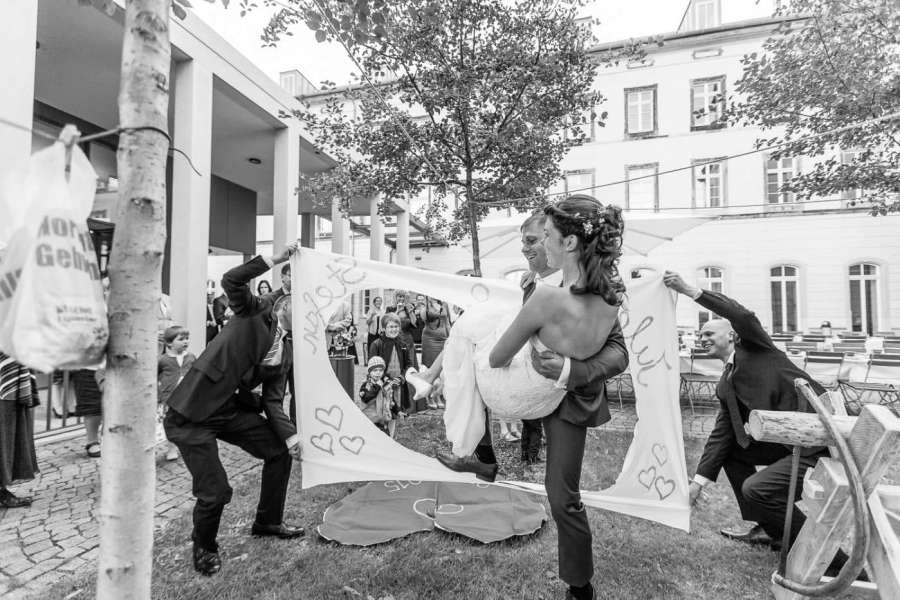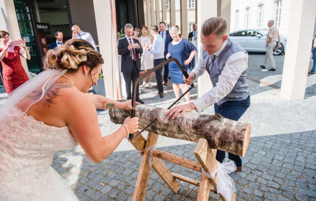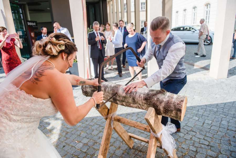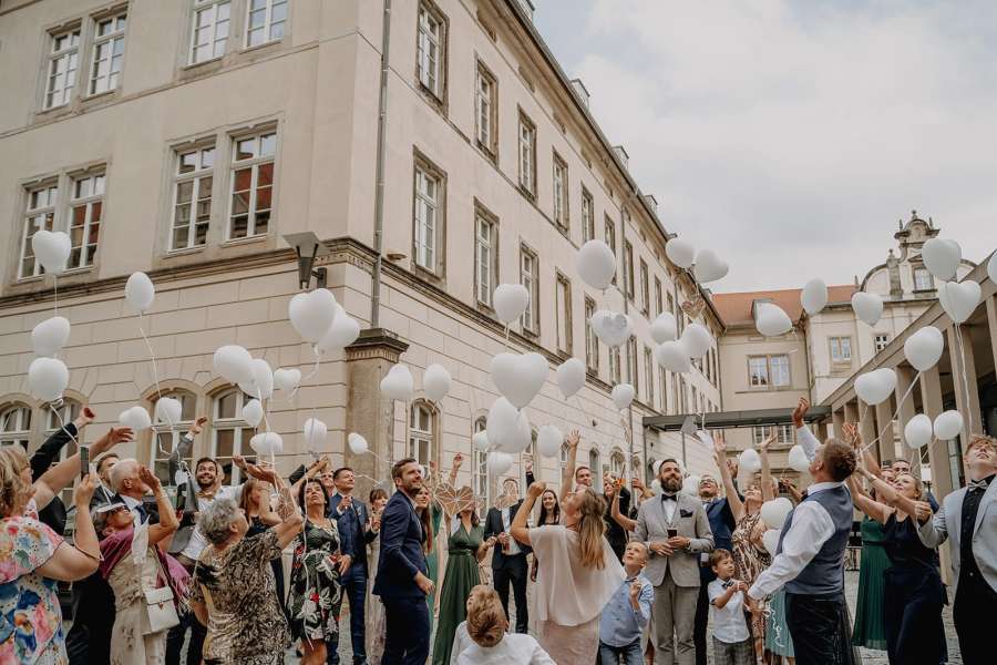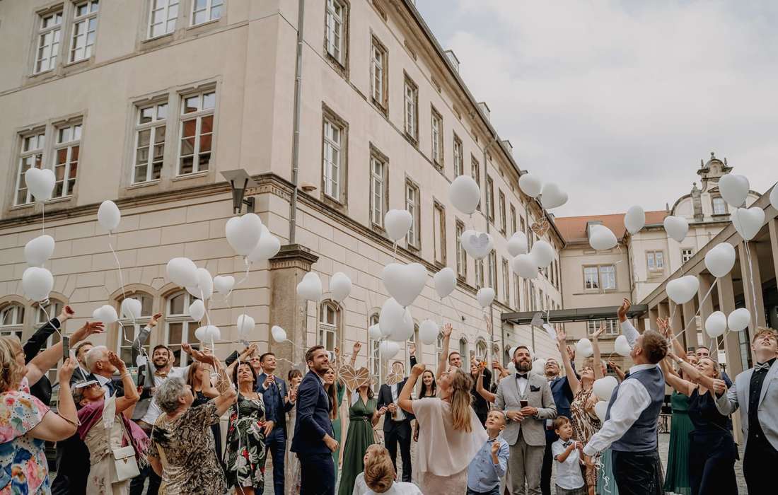 Der angrenzende Schlosshof bietet Platz für diverse Aktivitäten – so können Sie mit Ihrem Hochzeitsauto direkt vor den Haupteingang der Location fahren und bekannte Hochzeitstraditionen ausleben, wie das Holzstammsägen, das Wäsche waschen, das Herz ausschneiden, das Taubensteigen oder das beliebte Luftballonsteigen.