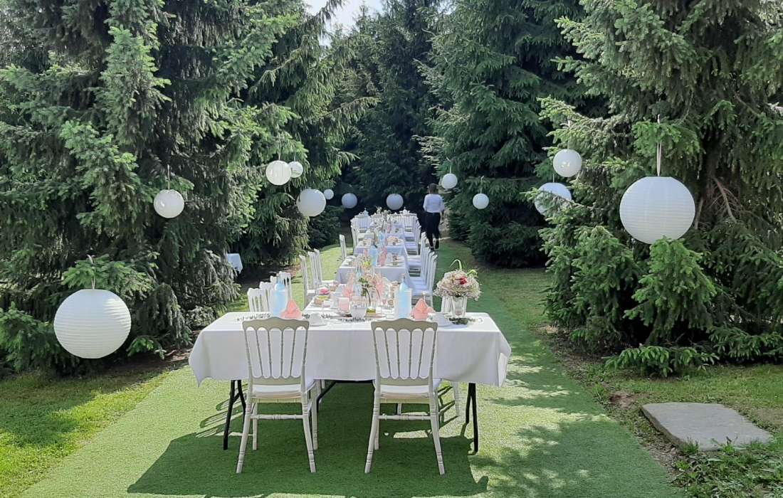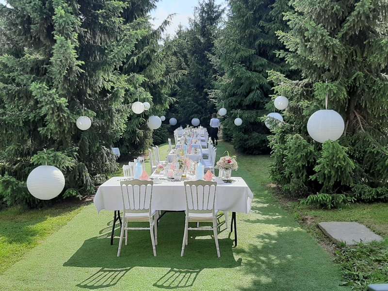 | Besonderheiten / Zusatzleistungen | Standesamt & Hochzeitsfeier an einem Ort - mit traumhafter Waldterrasse |