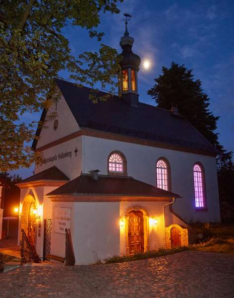 Die wunderschöne „Hochzeitskapelle Callenberg“ (Außenstelle des Standesamtes) liegt im Bundesland Sachsen, zwischen Dresden und Leipzig und bietet Brautpaaren ein wahrliches Hochzeits-Paradies. Die erste neuerbaute Privatkapelle Deutschlands besticht mit historischem Renaissance-Stil und absoluter Exklusivität umgeben von herrlicher Waldlandschaft. Es ist der Traum vieler Brautpaare, sich in einer kleinen romantischen Kapelle das „Ja-Wort“ zu geben. In einer ganz besonderen Privatkapelle (Außenstelle des Standesamtes) ist dies jetzt möglich, sogar mit der anschließenden Hochzeitsfeier - alles an einem Ort – mitten im Grünen. Seit der Eröffnung 2018 ist die Hochzeitskapelle Callenberg zu einem richtigen Geheimtipp unter Brautpaaren aus Deutschland, Österreich, der Schweiz und Großbritannien geworden. Bauherr Tino Taubert ließ eine historisch anmutende mittelalterliche Privat-Kapelle bauen, um zusammen mit der originalen Festscheune ein neues und wunderschönes Hochzeits-Paradies für Brautpaare aus aller Welt zu schaffen. Dies ist ihm eindeutig gelungen. Der „Trausaal“ steht für standesamtliche und „Freie Trau-Zeremonien“ mit bis zu 80 Sitzplätzen und 20 Stehplätzen bereit und kann ebenso als Festsaal mit bis zu 70 Sitzplätzen beispielsweise für das Abendessen eingerichtet werden. Als „Party-Kapelle“ (ohne Tische) können hier bis zu 100 Gäste feiern. Das Kaffeetrinken und Abendessen ist (immer nach den Wünschen des Brautpaares) auch auf der malerischen Waldterrasse oder in der historischen Festscheune möglich, inkl. gastronomischem Full-Service und dem freundlichen Kellner-Team der „Hochzeitskapelle Callenberg“.