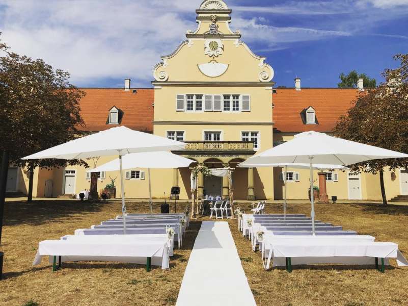 | Erklärung zur Gästezahl | Schlosssaal (bis 130 Personen), Blauer Salon (bis 60 Personen) |