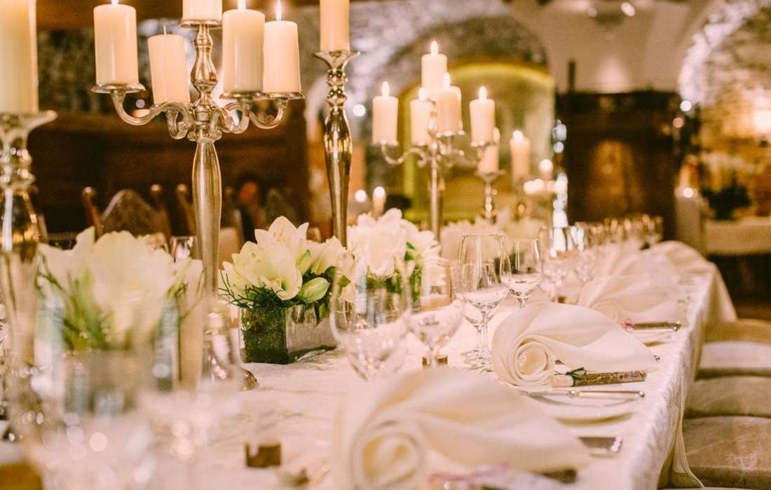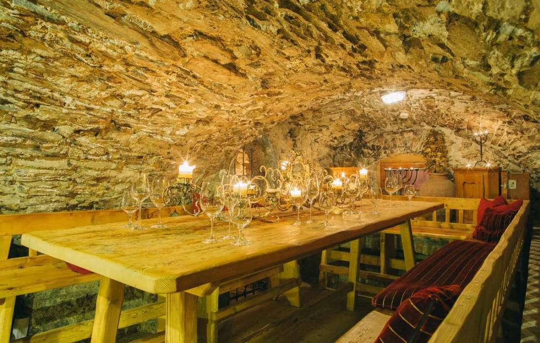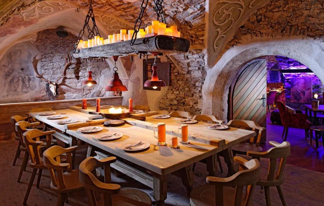 Gewölbesaal (bis 180 Personen); Ritter Oswald Stube (bis 90 Personen); Weinkeller (bis 12 Personen)
