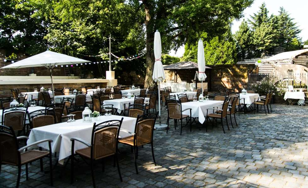 Schloss Edesheim, eingebettet in einem über 5ha großen Park mit Weinbergen und Wasseranlagen, ist eine Oase der Ruhe und des Genießens. Ein einzigartiges historisches Ambiente in Verbindung mit der persönlichen Atmosphäre des Hauses garantiert einen unvergesslichen Aufenthalt. Kulinarisch wird man in diesem historischen Gebäude mit einer marktfrischen, mediterranen Küche und erlesenen Weinen aus der Pfalz verwöhnt, welche  im eleganten Gourmet-Restaurant serviert werden. Für Hochzeitsgäste bilden die historischen Säle und Gewölbekeller den idealen Rahmen für einzigartige Festlichkeiten. In Verbindung mit der persönlichen und professionellen Beratung ist sichergestellt, dass jede Hochzeit zu einem Ereignis wird. Vom lockeren Sektempfang mit Fingerfood im Schlosspark bis zum mehrgängigen Galadinner mit hochwertigem Unterhaltungsprogramm ist in Schloss Edesheim alles möglich. In der stilvollen Atmosphäre des Ballsaales, Churpfalzsaales sowie des Wittelsbachkellers, mit direktem Zugang zum Schlosspark, serviert die aufmerksame Servicebrigade festliche Menüs oder Büffets für bis zu 120 Personen aus der mehrfach ausgezeichneten, mediterranen Schlossküche. Für Brautpaare besteht sogar die Möglichkeit sich im besonderen Ambiente des Ballsaals standesamtlich trauen zu lassen, da das Schloss zudem noch eine offizielle Nebenstelle des Standesamtes der Verbandsgemeinde Edenkoben beherbergt. Bei der Planung und Durchführung Ihrer Veranstaltung werden Sie von Anfang bis Ende professionell betreut und beraten, so dass Sie Ihrer Feierlichkeit beruhigt entgegensehen können.  Die Mitarbeiter kümmern sich auf Wunsch um die richtige musikalische Begleitung, die Tisch- und Raumdekoration, Menükarten, Tischkarten und  Rahmenprogramme.