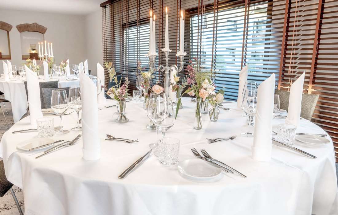 Für Ihre Feierlichkeit in einem ganz besonderen Rahmen bietet sich unser Kaminrestaurant mit direktem Zugang zur Gartenterrasse sowie unsere Räume Aventurin und Turmalin in der oberen Etage, ebenfalls mit schöner Terrasse an.