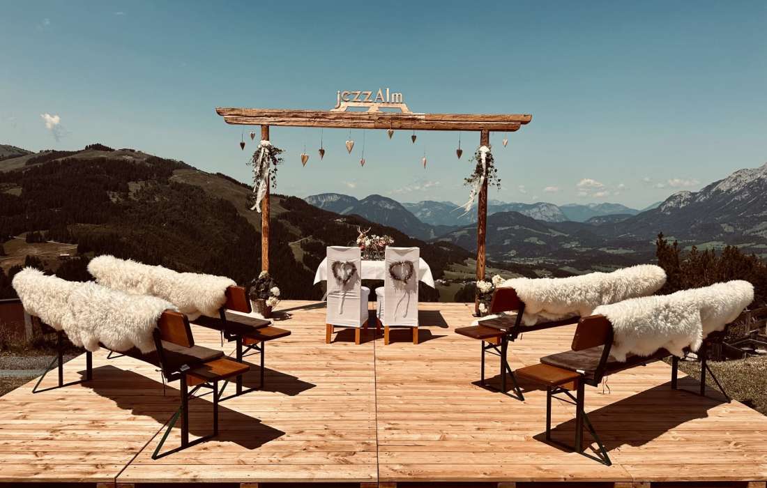 Wir vom jezz AlmResort sind überzeugt, dass der schönste Tag im Leben den besten Ort verdient hat. Und genau den haben wir hier bei uns gefunden. Wo könnte man sich besser das JA-Wort geben als auf 1250 m, dort wo sich Himmel und Erde küssen und mit dem Wilden Kaiser als Ehrengast.