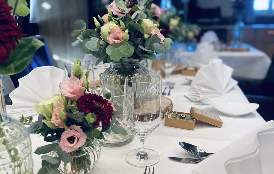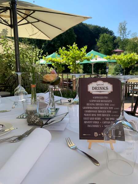 | Angebotene Verköstigung | Fingerfood, Sektempfang, Mitternachtssnack, Cocktails, Menü, Kaffeespezialitäten |