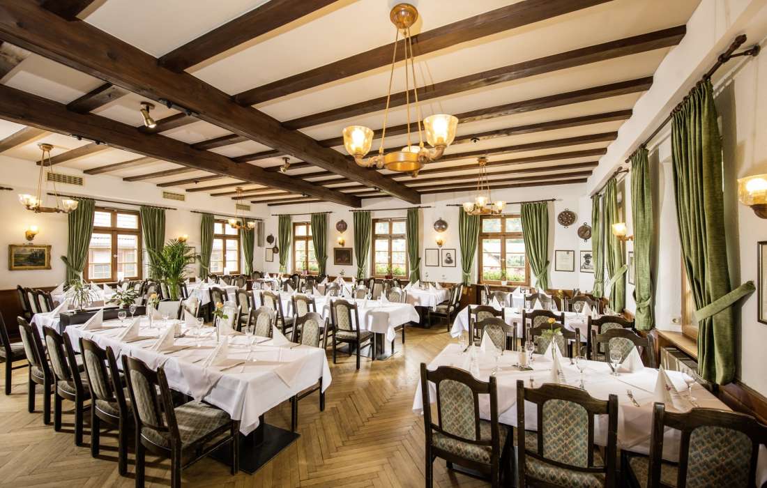 Darüber hinaus genießt die gutbürgerliche bis gehobene Küche von Roy Rath über die Region hinaus einen exzellenten Ruf. Unsere Küchen,- und Servicebrigade verwöhnt sie mit regionalen Wildgerichten und mit saisonalen Gerichten wie zum Beispiel frischer Stangenspargel aus Graben Neudorf .