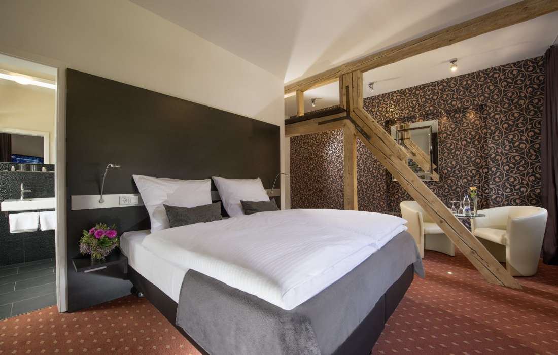 Die im Jahr 2012 kernsanierten Zimmer lassen keinerlei Wünsche offen. Weiche Bettdecken und original Boxspringbetten garantieren Ihnen einen hohen Schlafkomfort.