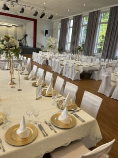 Erklärung zur Gästezahl | Restaurant Georgstube (bis 65 Personen); Festsaal „Hubertus“ (bis 100 Personen); Festsaal „Marstall“ mit Marstallgasse und Hotelwiese (bis 250 Personen) |