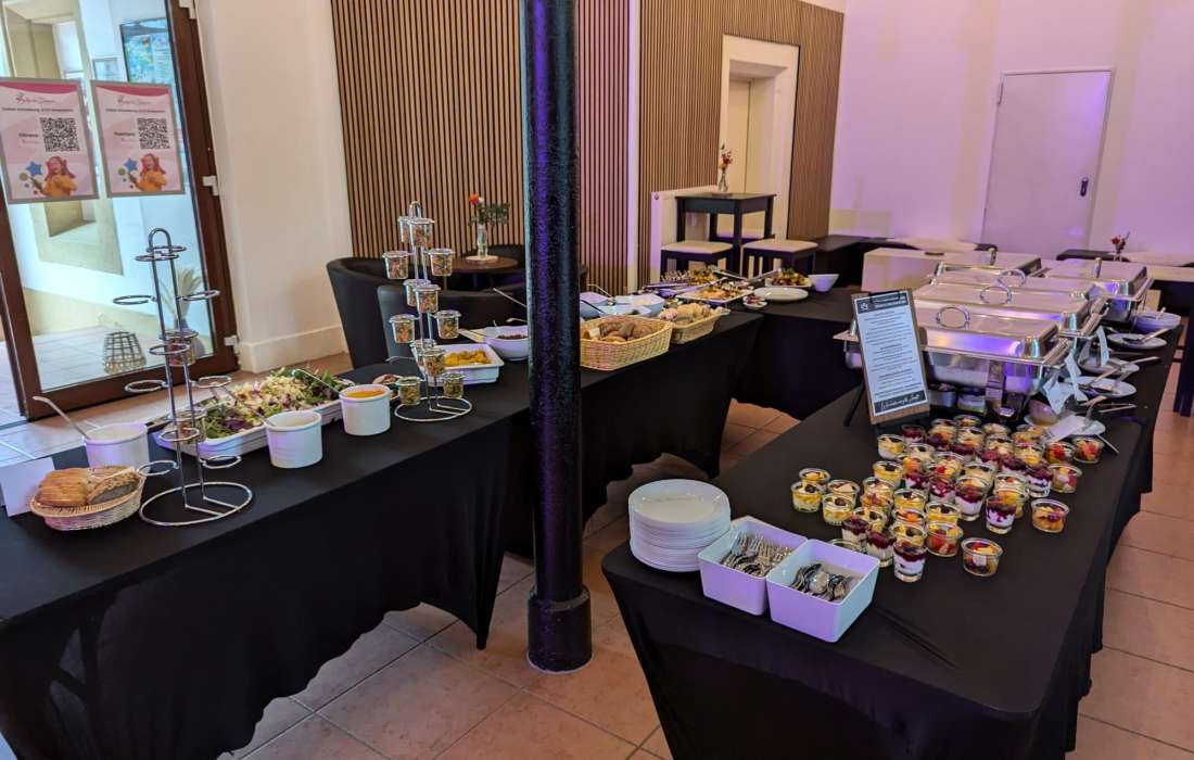 | Angebotene Verköstigung | Grillbuffet, Fingerfood, Kaffeespezialitäten, Cocktails, Buffet, Mitternachtssnack, Kuchenbuffet, Sektempfang |