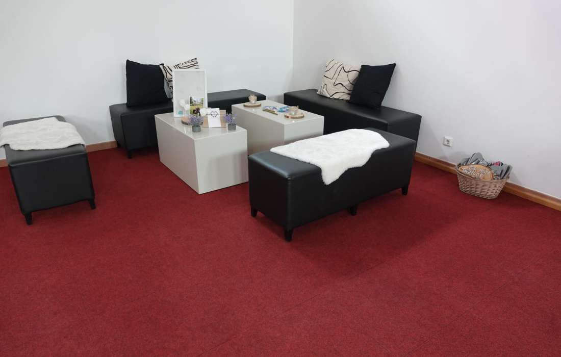 Neben dem großen Tanzbereich steht Ihnen ein stilvoller Aufenthaltsbereich zur Verfügung, der mit einer professionellen Bar, bequemen Loungemöbeln und moderner Ausstattung wie einer Kaffeemaschine und einem Wasserspender ausgestattet ist. Ihre Gäste können sich in entspannter Atmosphäre unterhalten und erfrischen.