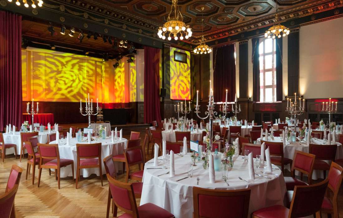 Der Meistersaal lässt sich individuell gestalten und flexibel inszenieren – von klassisch-elegant über modern bis hin zu glamourös. Moderne Licht- und Tontechnik, ein professionelles Team sowie erfahrene Partner sorgen dafür, dass Ihre Hochzeit reibungslos und nach Ihren Vorstellungen umgesetzt wird.