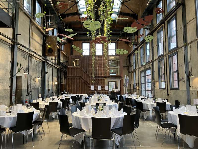 Alle Bereiche des Areals, wurden mit hochmoderner Technik ausgestattet und sind denkmalgeschützt aufbereitet– von der Lehrlingsschmiede, welche bis heute in der Amboss Lounge wiederzufinden ist, bis hin zu großzügigen Veranstaltungsflächen, die bis zu 2.300 Gäste willkommen heißen.