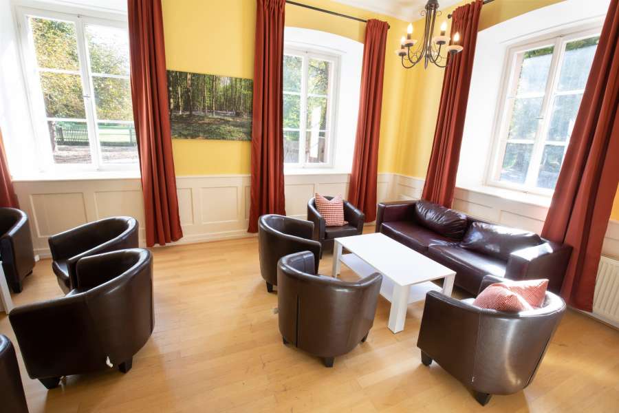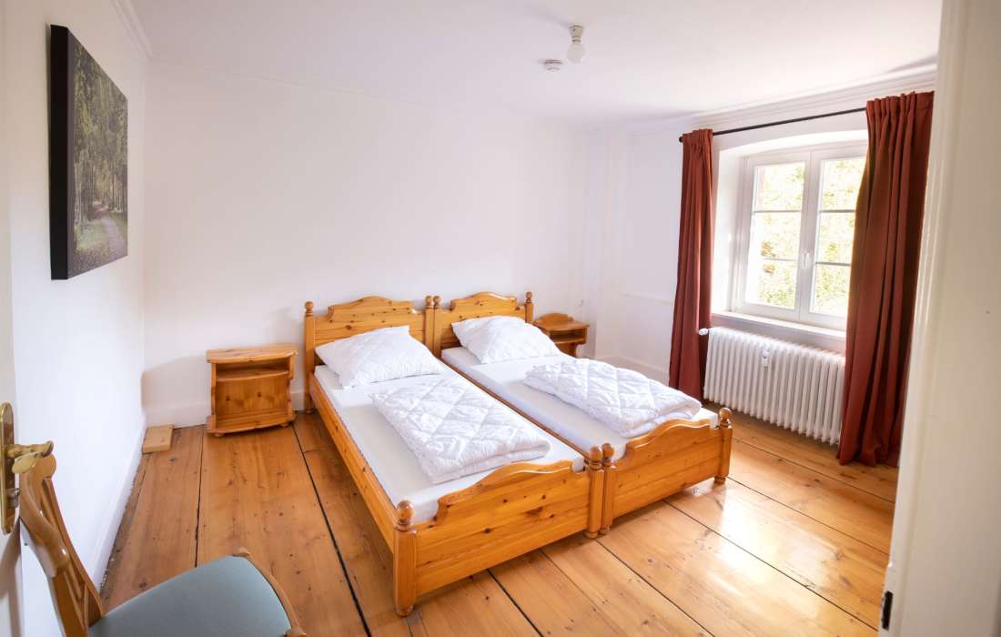 Die 8 Zimmer im 1. OG, welche alle mit DU/WC ausgestattet sind, sind als Doppel- u. Mehrbettzimmer angelegt. Im 2. OG sind drei Doppel- bzw. Mehrbettzimmer eingerichtet. Es stehen dort zwei Badezimmer zur Verfügung. Lounge mit Nebenzimmer bieten eine schöne Atmosphäre für gemütliches Beisammensein und können, wie der Seminarraum, zusätzlich hinzugebucht werden. Der Seminarraum ist für Besprechungen oder als zusätzlicher Aufenthaltsraum nutzbar.