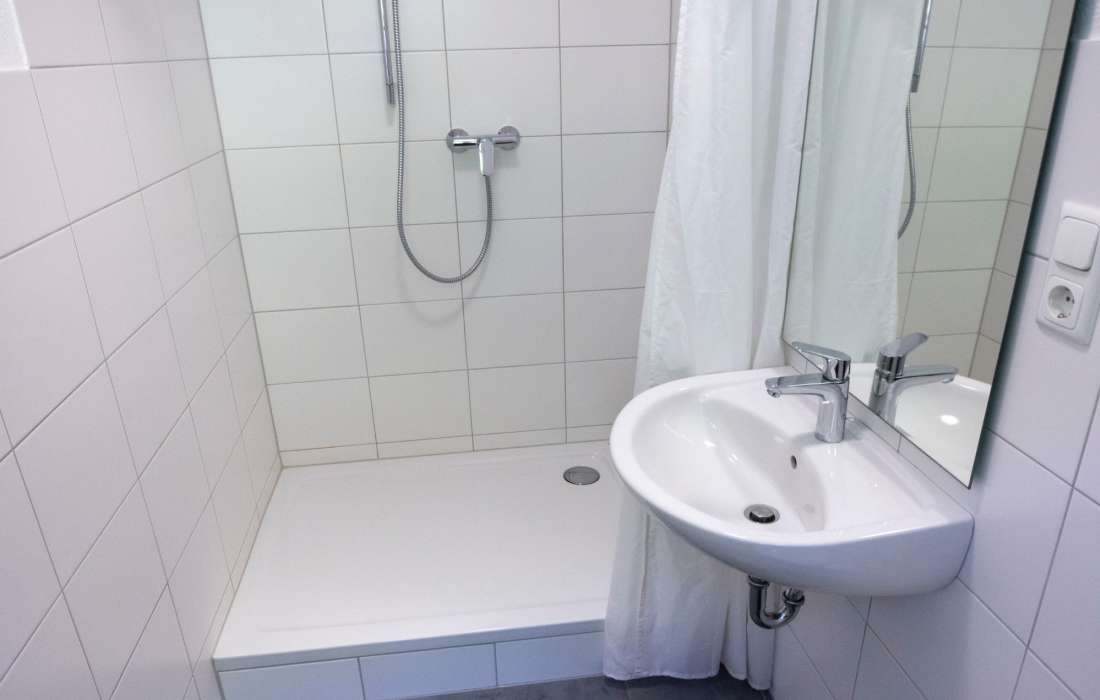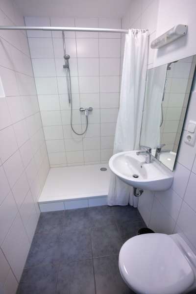 Es stehen ausreichend Toiletten im EG und jeweils in den Zimmern zur Verfügung.