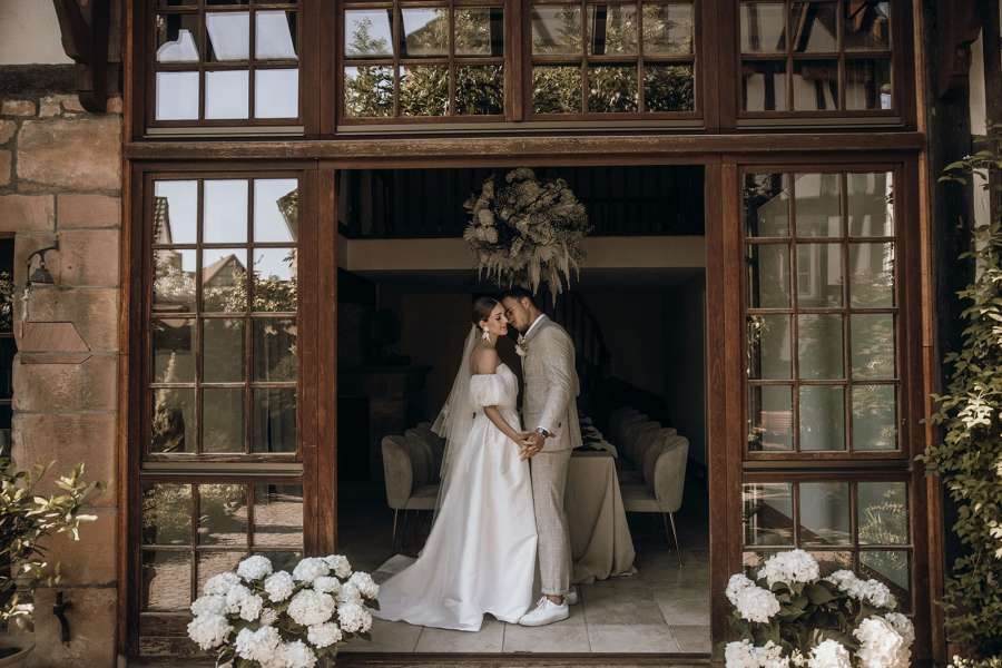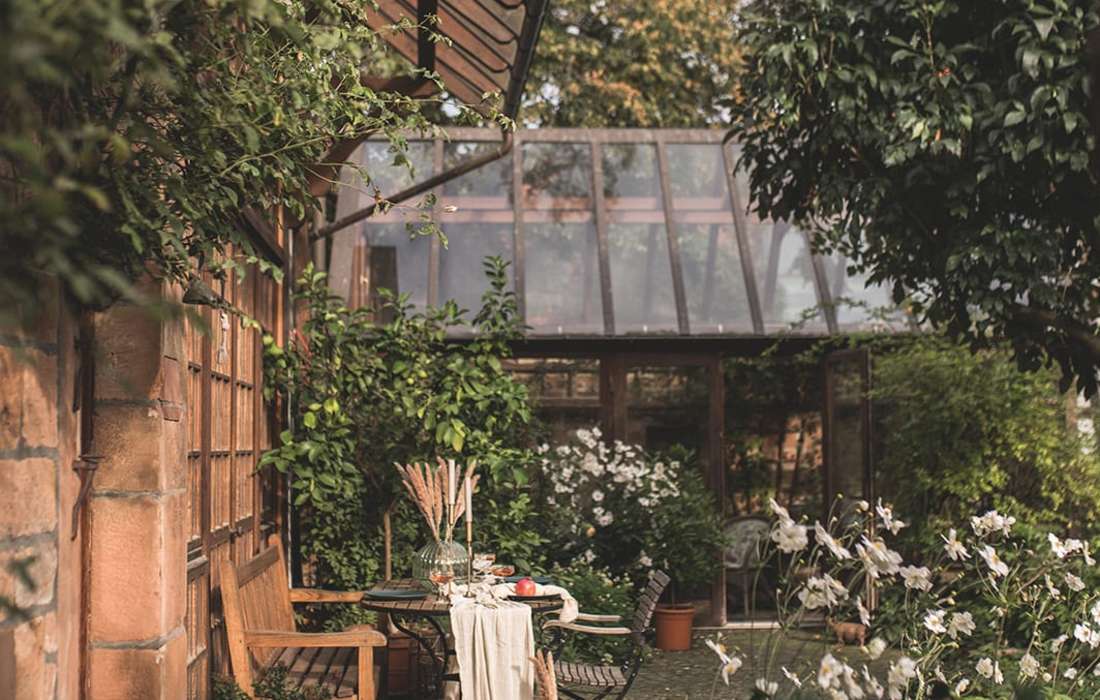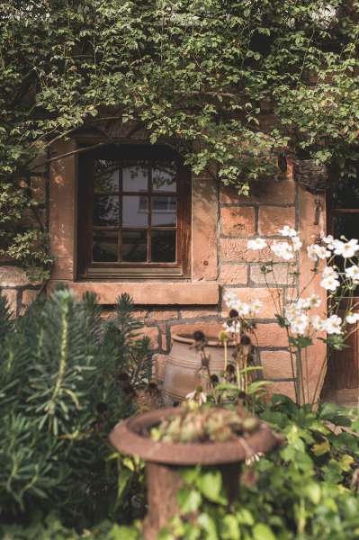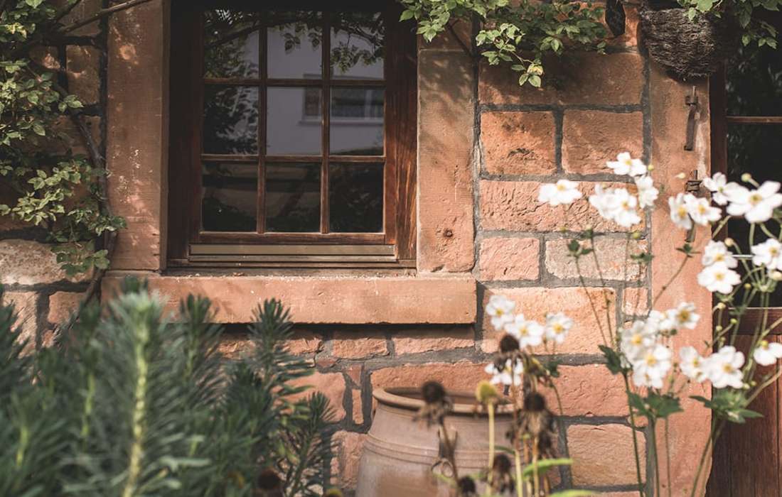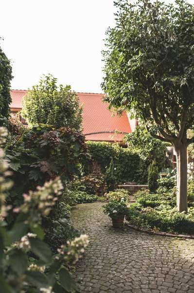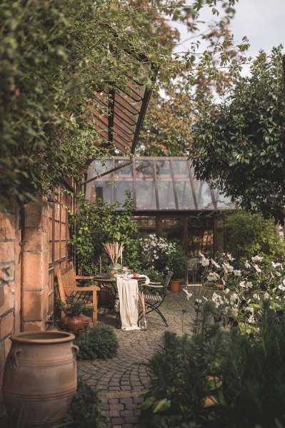 Unsere alte Hofreite mit ihren Fachwerk- und Sandsteinelementen, geben den historischen Charme, welcher mit modernem InteriorDdesign einen wundervollen Kontrast bildet. Die Gebäude aus dem späten 18. Jahrhundert wurden mit viel Liebe und Engagement renoviert und umgestaltet. Das gesamte Ensemble wurde 2016 zu "Hessens schönstem Garten" ausgezeichnet und gewann 2021 die Silbermedaille beim Wedding Award Germany für die Kategorie "Location".