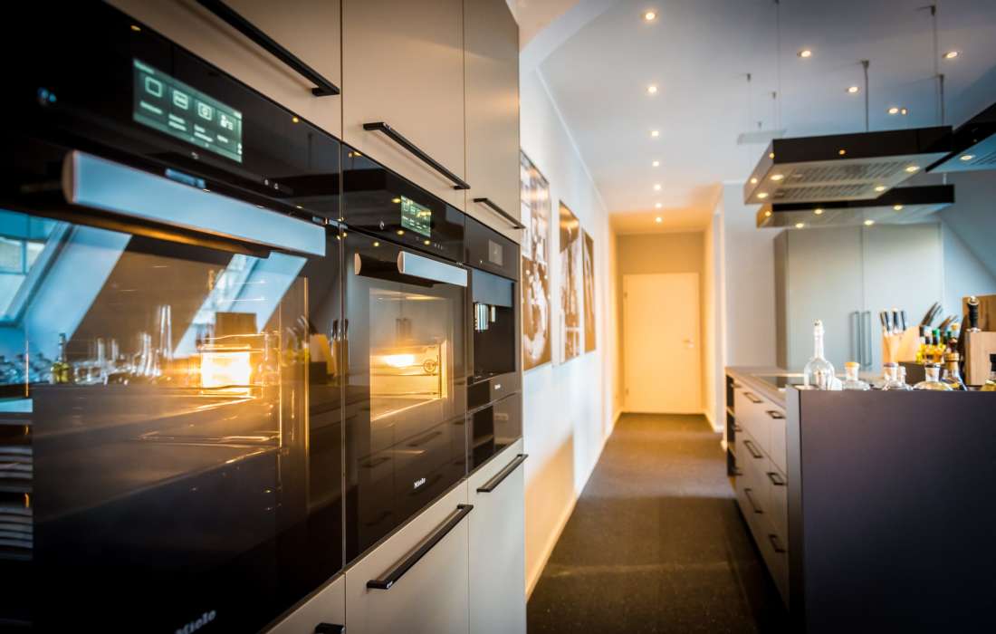 Das auf der 4. Etage gelegene Penthouse Rheinloft Cologne, das angrenzende kleine Loft, zwei hochprofessionell ausgestattete Kochateliers und der Dachgarten bieten ein majestätisches Ambiente!