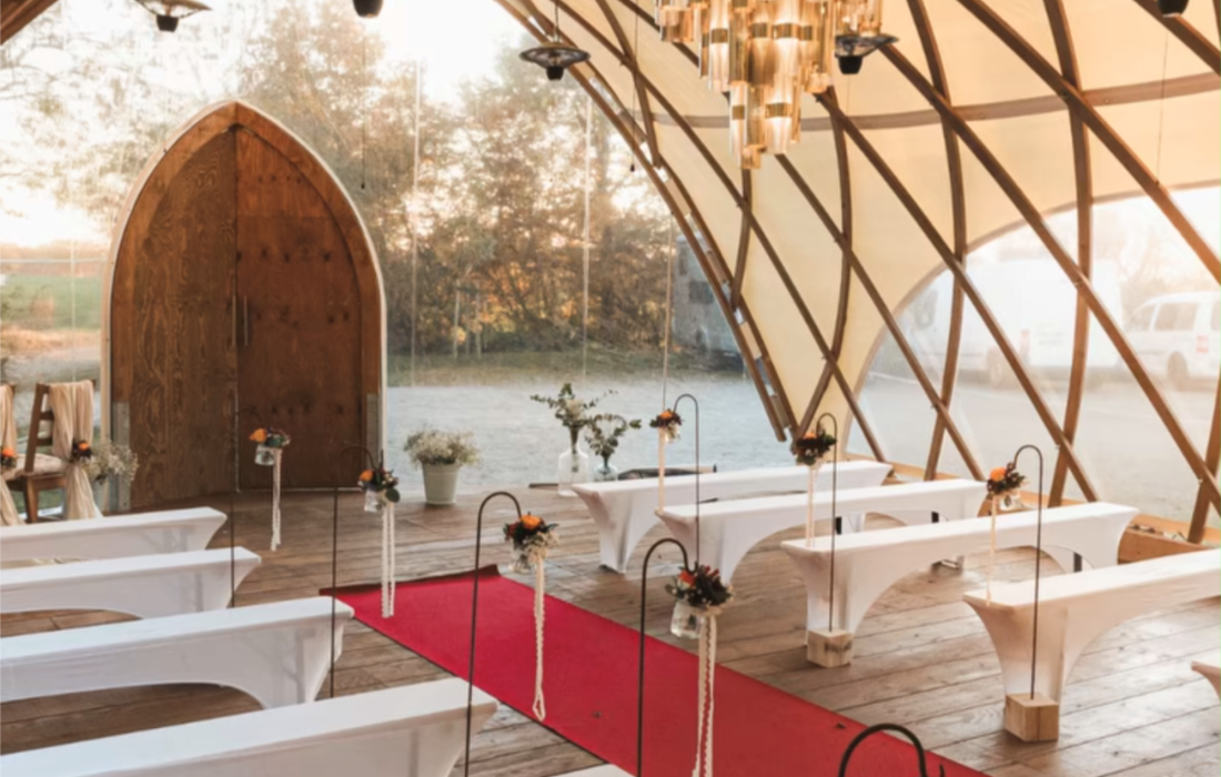 Feiere deine Traumhochzeit inmitten blühender Natur! Unser romantisches Gelände bietet eine zauberhafte Kulisse mit altem Waldbestand und idyllischer Ruhe. Bis zu 120 Gäste können hier gemeinsam mit dir bzw. euch den schönsten Tag eures Lebens feiern. Unter dem Dach unseres 70 qm großen Pavillons finden bis zu 60 Gäste Platz. Genieße die wohltuende Atmosphäre und gestalte deinen besonderen Tag ganz nach deinen Wünschen. Unser Pavillon kann auf Wunsch (gegen Aufpreis) auch mit Bestuhlung, Beamer und Leinwand ausgestattet werden. Für eine entspannte Anreise stehen 15 Parkplätze direkt vor unserem Tor und begrenzte Übernachtungsmöglichkeiten zur Verfügung.