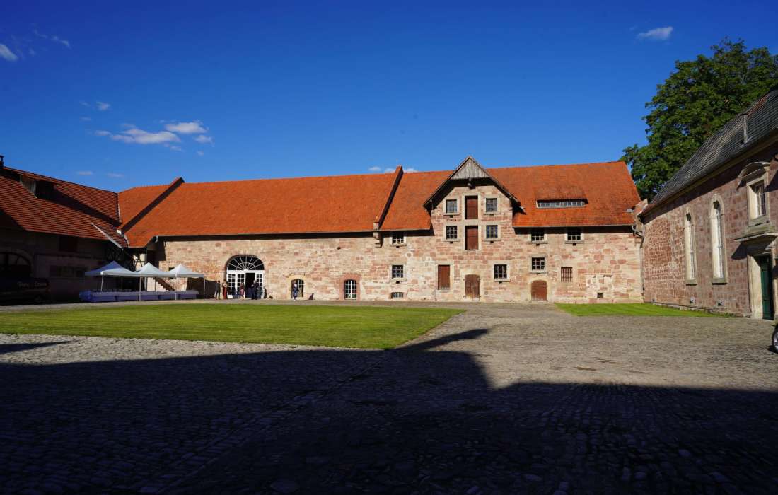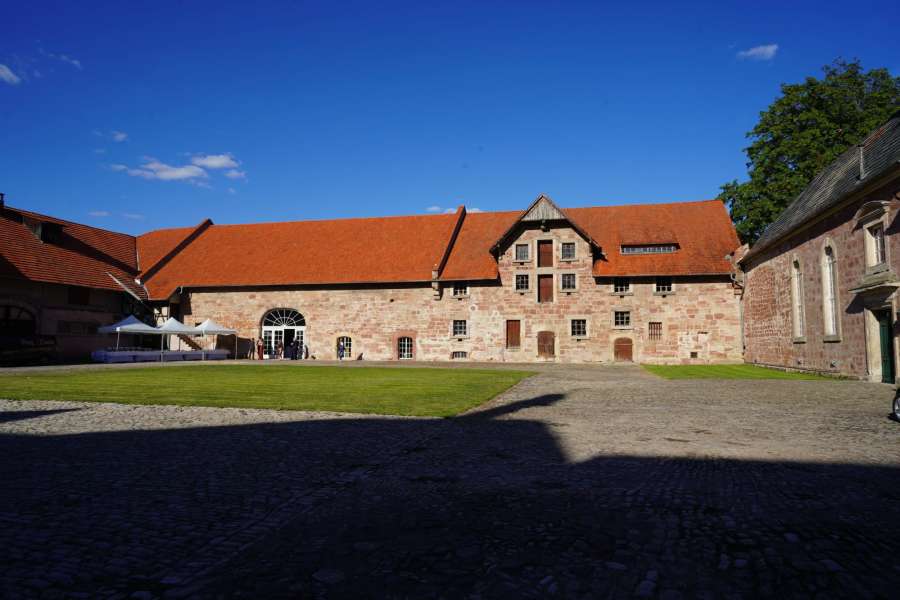 Eventscheune inmitten großräumiger Schlossanlage an der Werra mit Patronatskirche, Standesamt, Park und großem Innenhof, Bar, Tanzfläche, Cateringküche