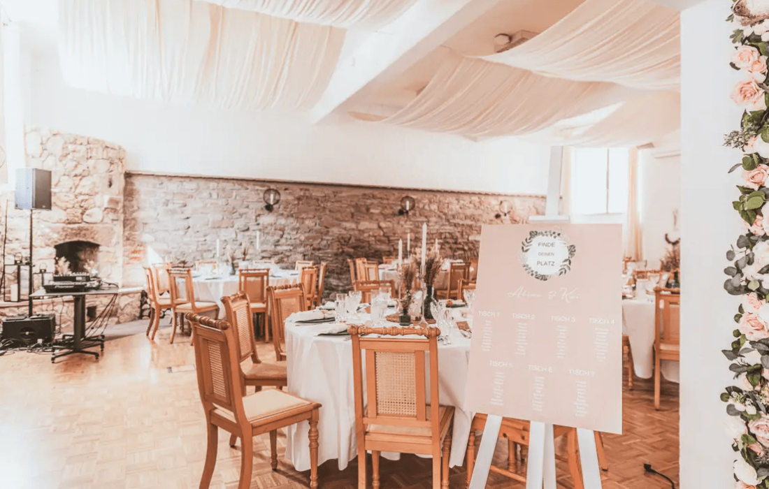 | Angebotene Verköstigung | Buffet, Sektempfang, Kuchenbuffet, Fingerfood, Foodtruck, Mitternachtssnack, Kaffeespezialitäten, Grillbuffet, Cocktails |