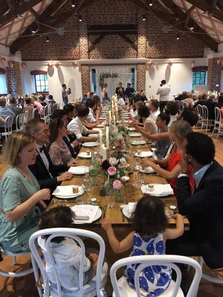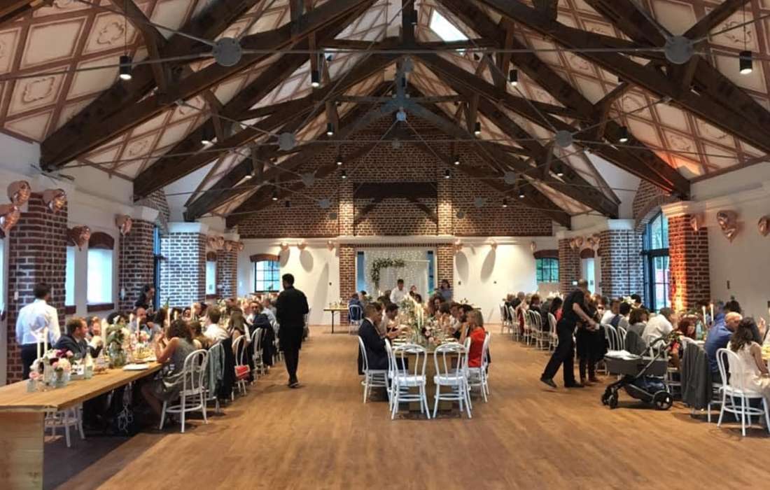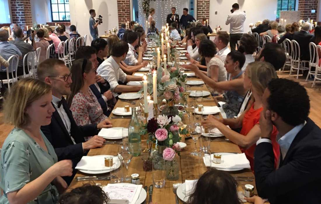 Gleich vier Festsäle stehen euch drinnen zur Verfügung. Je nach Größe eurer Hochzeitsgesellschaft könnt ihr sie einzeln buchen, allerdings sind sie auch miteinander zu verbinden. Vom Hauptsaal kann man außerdem auf die große Terrasse treten, die sich mit ihrem herrlichen Ausblick ins Grüne hervorragend für Sektempfänge oder ein Lounge-Arrangement für lauschige Sommernächte eignet. Große Hochzeitsgesellschaften mit bis zu 250 Gästen können in der zugehörigen und modern ausgestatteten Eventscheune im Innenhof der Schlossanlage Platz finden.