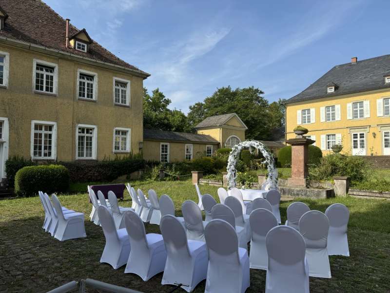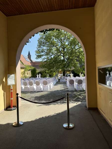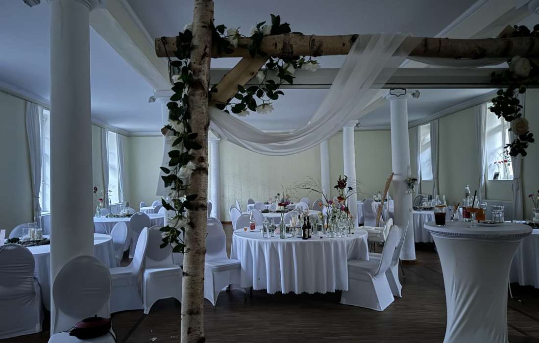 Wunderschöne Lokalität! Wir haben uns nach der ersten Besichtigung verliebt. Wir haben uns im Zeremonienraum trauen lassen und haben anschließend im Schloss gefeiert. Auch der Kontakt mit der Dame des Hauses war äußerst angenehm, da sie mit Leib und Seele ihr Vermächtnis für schöne Momente im Leben andere zur verfügung stellt und außerdem eine sehr sympathische Person ist, mit der man gerne spricht und plant. Das Café Frohköstlich bereitete uns wunderbar, köstliche Kuchen und Gastgeschenke, welche vollkommen (vegan) nach unserem Sinne waren. Auch die Zusammenarbeit mit den Dienstleistern hat ohne Probleme auf dem Schlossgelände funktioniert und alles lief im Hintergrund. Klare Empfehlung für alle, die eine wunderschöne Kulisse für ihre Hochzeit und die Hochzeitsbilder suchen!
