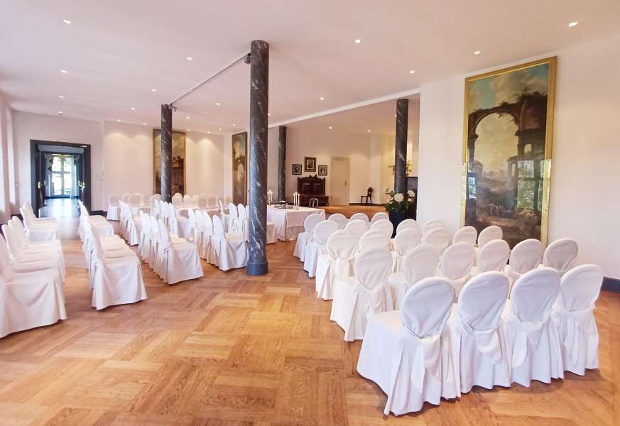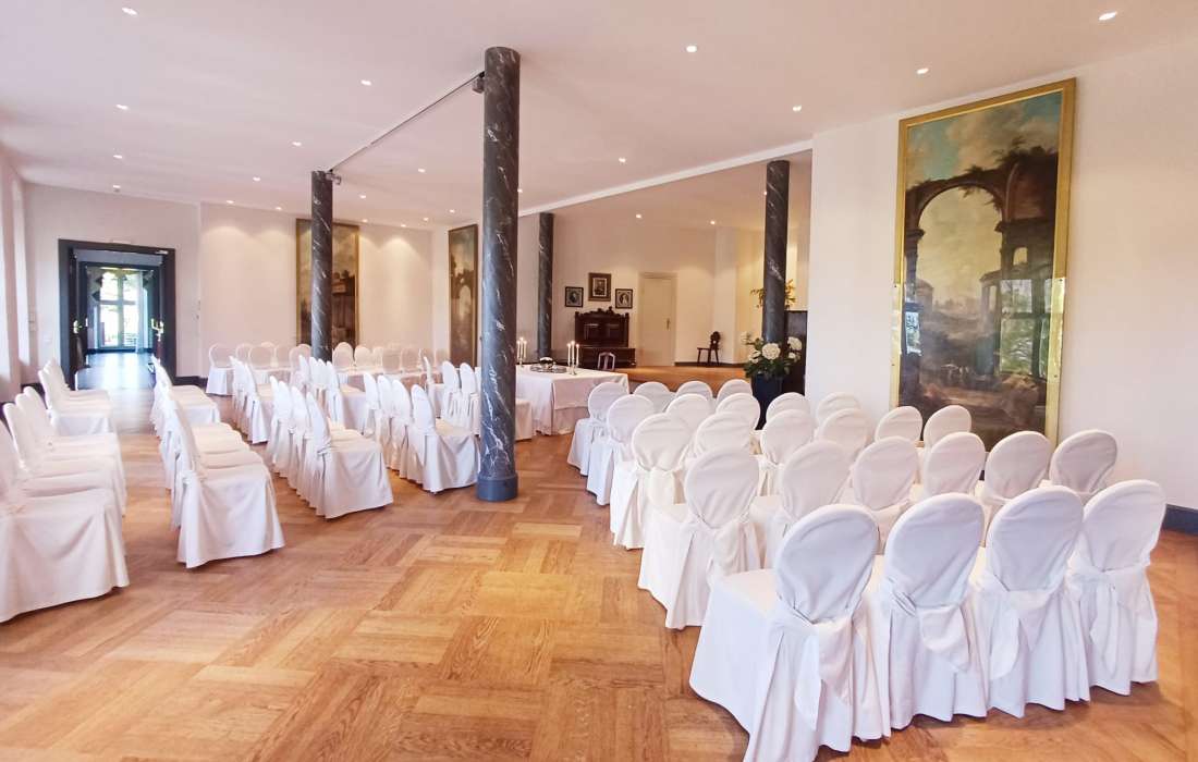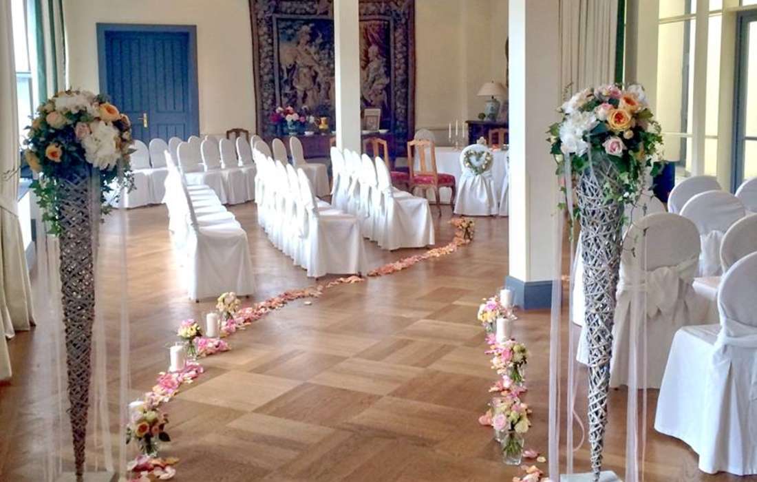Bitte beachten: Findet die Hochzeitsfeier im Festsaal mit Gartensalon und Terrasse statt, kann die Trauung nur im Gobelinsaal oder Roten Salon erfolgen.