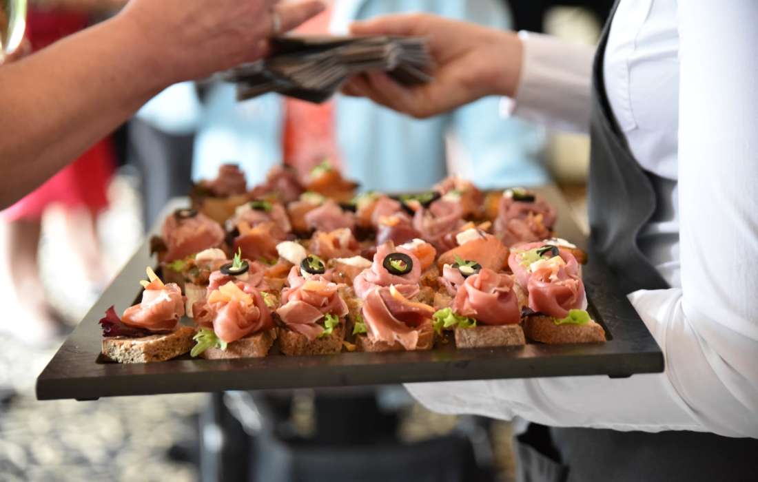| Angebotene Verköstigung | Buffet, Menü |