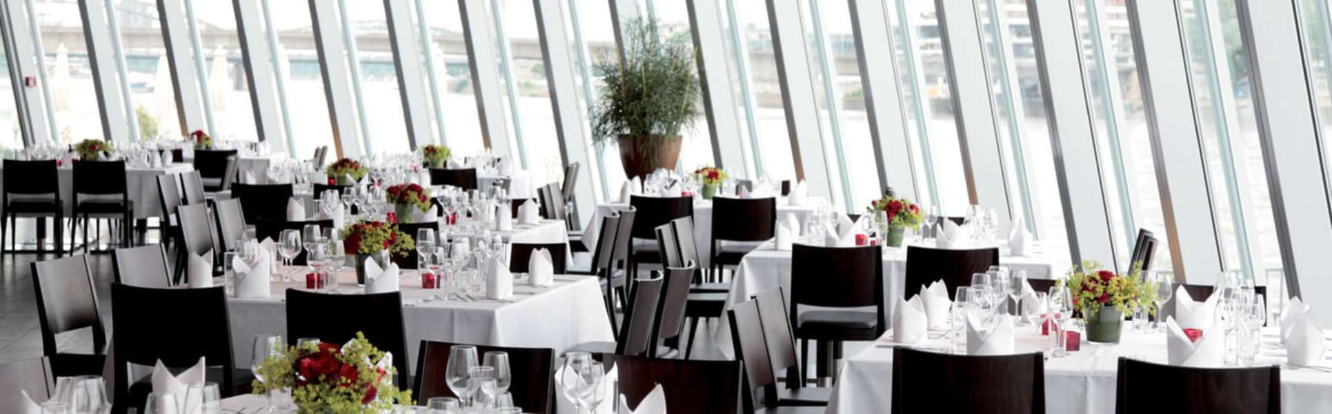 Eure Hochzeit feiern könnt ihr in der exklusiven Bel Etage mit Blick auf den Dom, im Panorama-Restaurant am Ufer des Rheins oder in der Schokoladenfabrik – das Ambiente ist in jedem Fall außergewöhnlich.