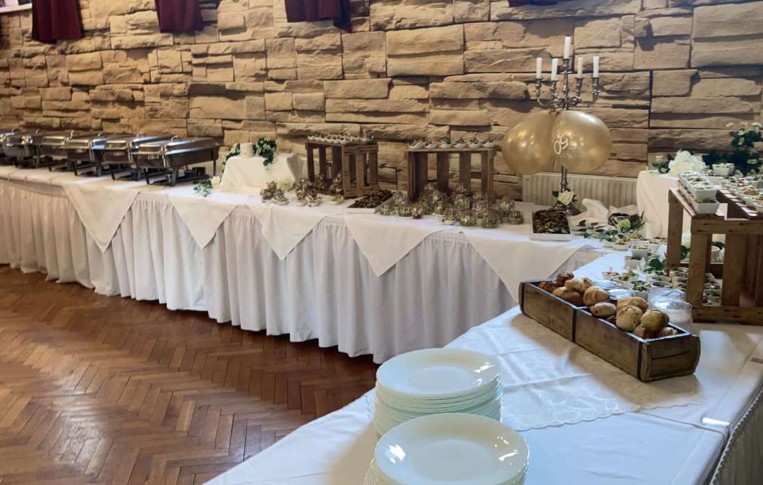 | Angebotene Verköstigung | Kuchenbuffet, Fingerfood, Buffet, Sektempfang |