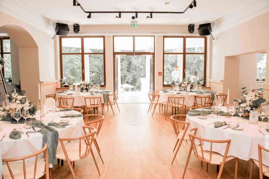 Lasst euch verzaubern von dem wunderschönen Gebäude, stilvoller Atmosphäre und einer malerischen Aussicht auf den Rosenau Park. Selbstverständlich dürft ihr ebenfalls unseren riesigen Garten nutzen – gerne auch für freie Trauungen.