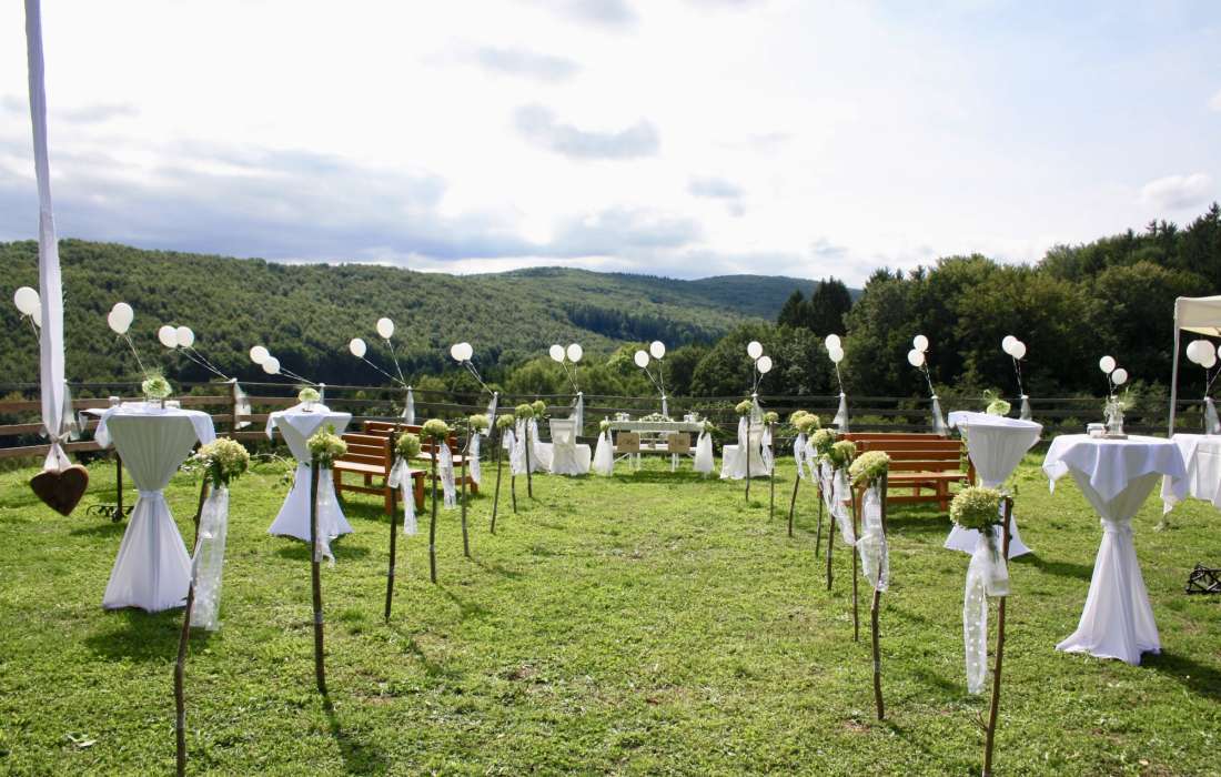 Feiern Sie ein unvergessliches Hochzeitsfest und lassen sie sich rundum verwöhnen. Mit unseren All-Inclusive Paketen wird nichts dem Zufall überlassen, sodass der schönste Tag im Leben genossen werden kann. Viel Erfahrung und ein großes Netzwerk von Dienstleistern machen uns zu einem großartigen Begleiter für Ihre Hochzeit!