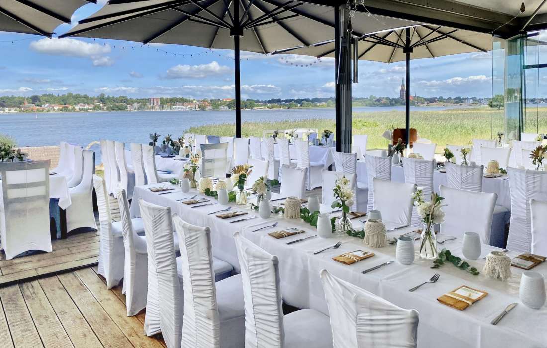uns eure Wünsche und wir gestalten euch ein individuell auf euch zugeschnittenes Arrangement. Lasst euch verzaubern vom Strandflair und dem romantischen Blick über die Schlei. Für jedes Wetter und jede Jahreszeit haben wir die passende stimmungsvolle Umgebung für eure Traumhochzeit mit standesamtlicher, kirchlicher oder freier Trauung.