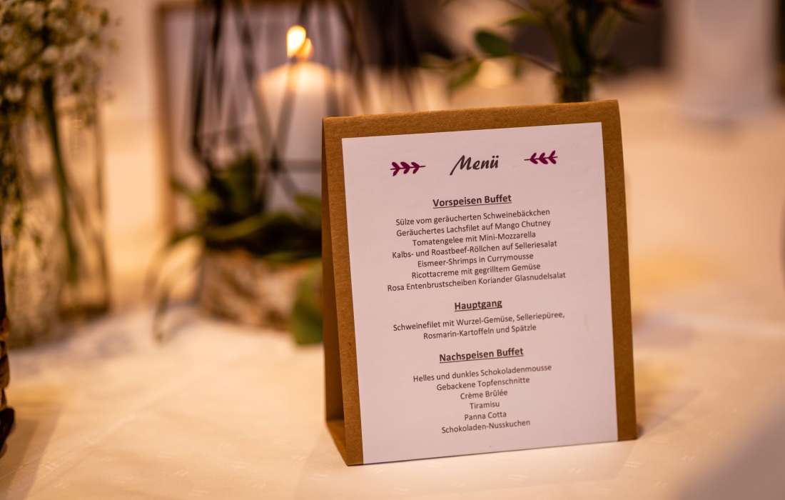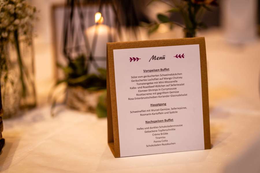 | Angebotene Verköstigung | Menü, Buffet, Sektempfang |