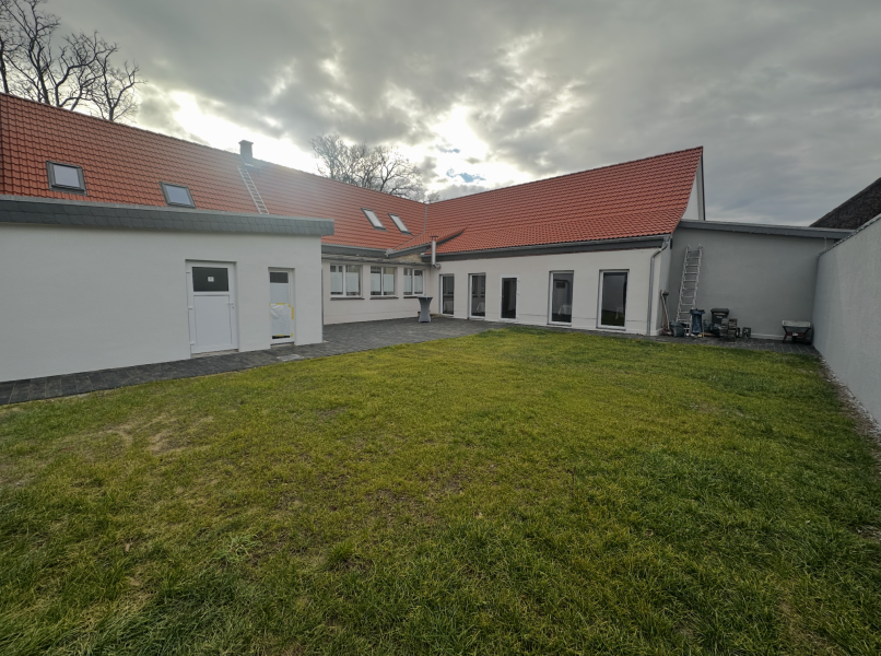 Das Vierseitenhof-Ensemble: Der charmante Vierseitenhof mit romantischem 1000qm Garten bildet das Herzstück für intime Trauungen und entspannte Momente. Hier befinden sich 10 gemütliche Doppelzimmer im Gästehaus sowie Wohnmobil-Stellplätze für Camping-Liebhaber. Perfekt für kleinere Feiern bis 60 Personen und als Rückzugsort für eure Gäste.