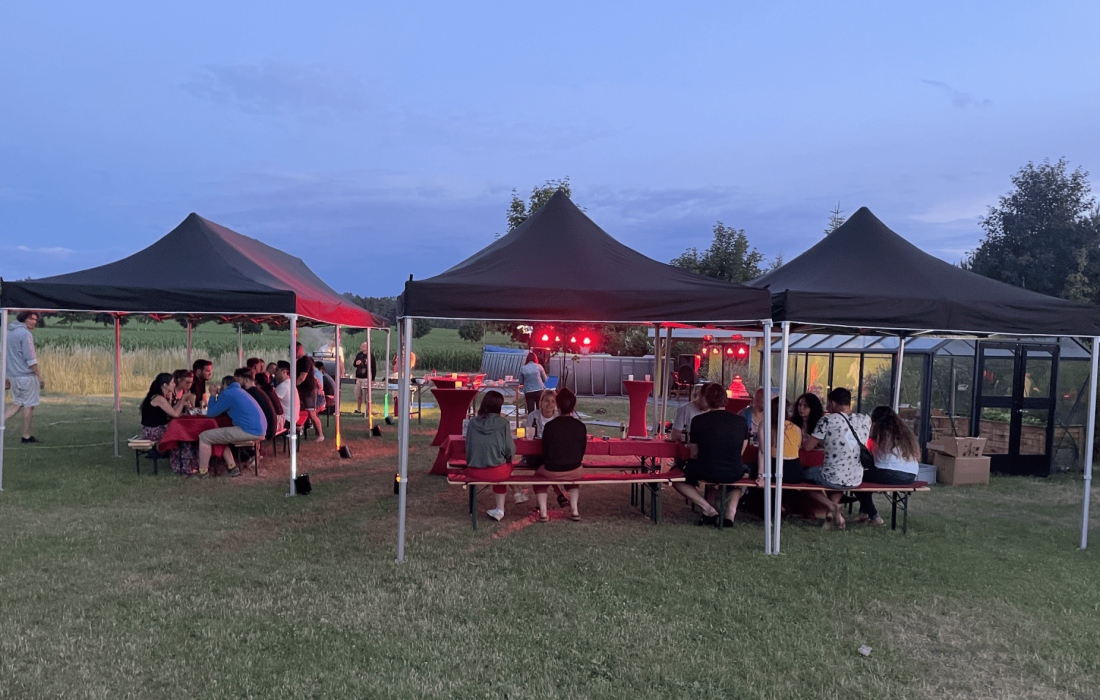 Komplette Ausstattung vor Ort: Professionelle Musikanlagen, Lichttechnik, Beamer mit 4m-Leinwand, Fotobox, Pavillons, Geschirr für 150 Personen, Popcorn-Maschine, Slushy-Maschinen, Softeismaschine, Waffeleisen, Eiswürfelbereiter - alles da! Keine teuren Mietkosten. Ihr bringt nur eure Ideen mit, wir stellen das Material.