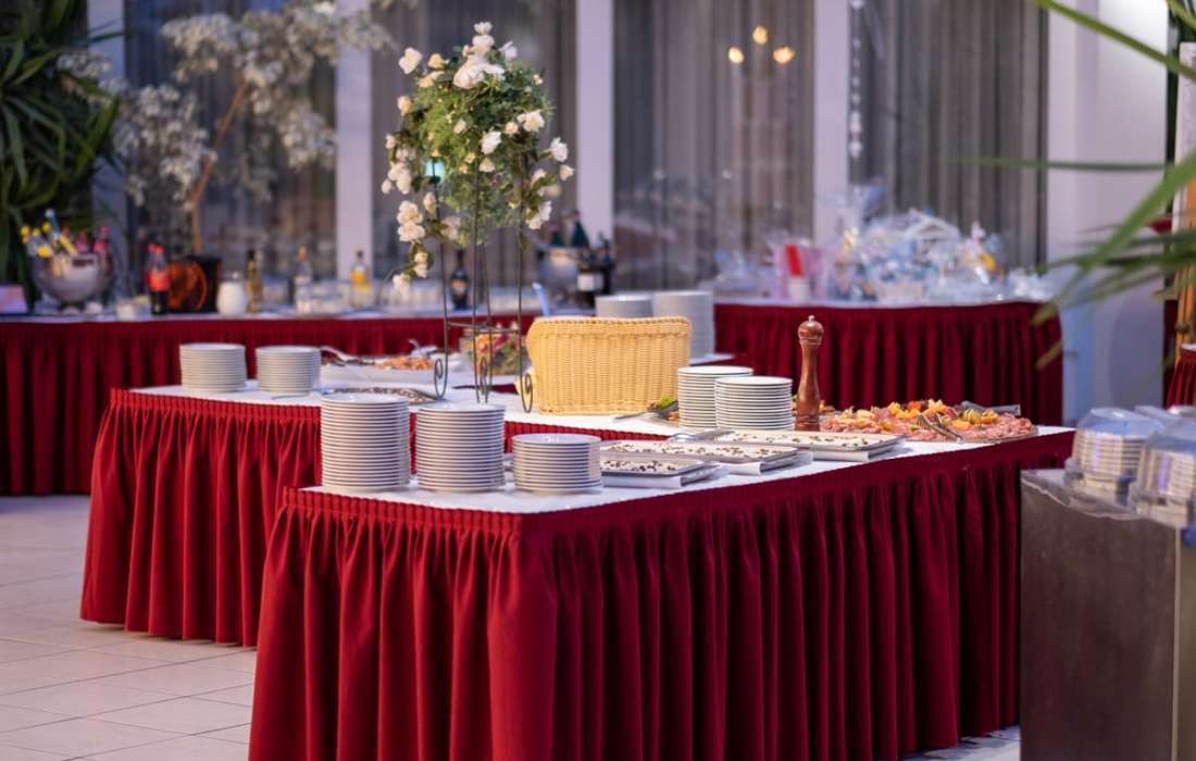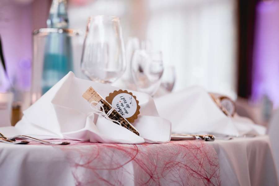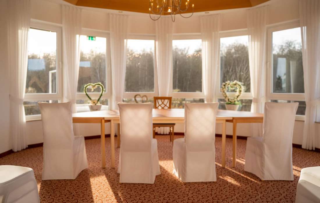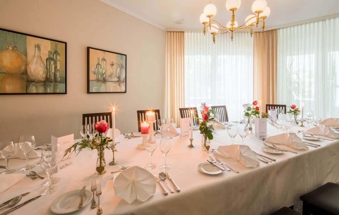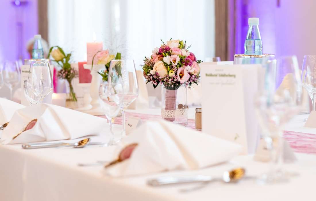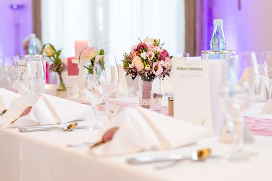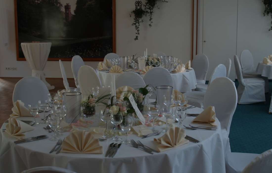 Die 15 Veranstaltungsräume bieten Hochzeitsfeiern mit bis zu 150 Personen einen idealen Rahmen. Alle Räume können ganz nach Ihren Wünschen vorbereitet werden. An Tischdecken und Servietten stehen Ihnen verschiedene Farbtöne sowie jeweils farblich passende Kerzen zur Verfügung. Gerne übernimmt das Hotelteam auch das Schreiben Ihrer Menükarten, die Besorgung der Blumenarrangements sowie des Kuchens.