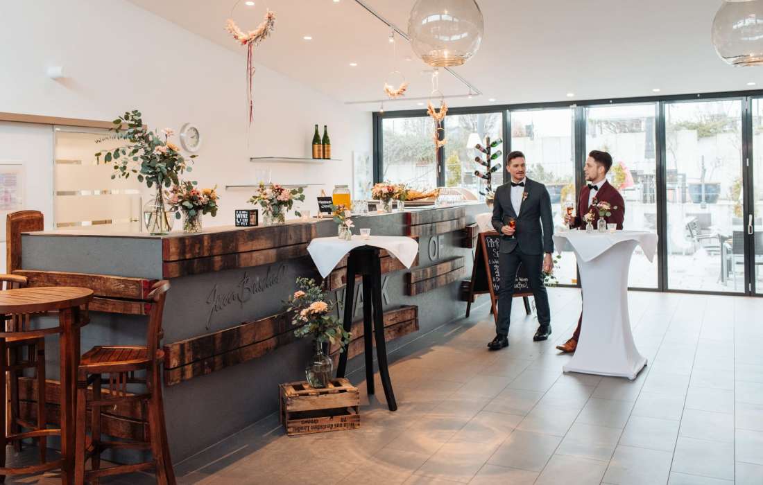Das Weingut mit Scheunenflair. Freie Trauung im Weinberg, Empfang auf der sonnigen Terrasse