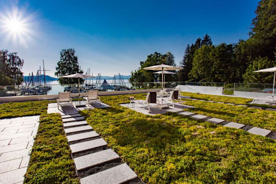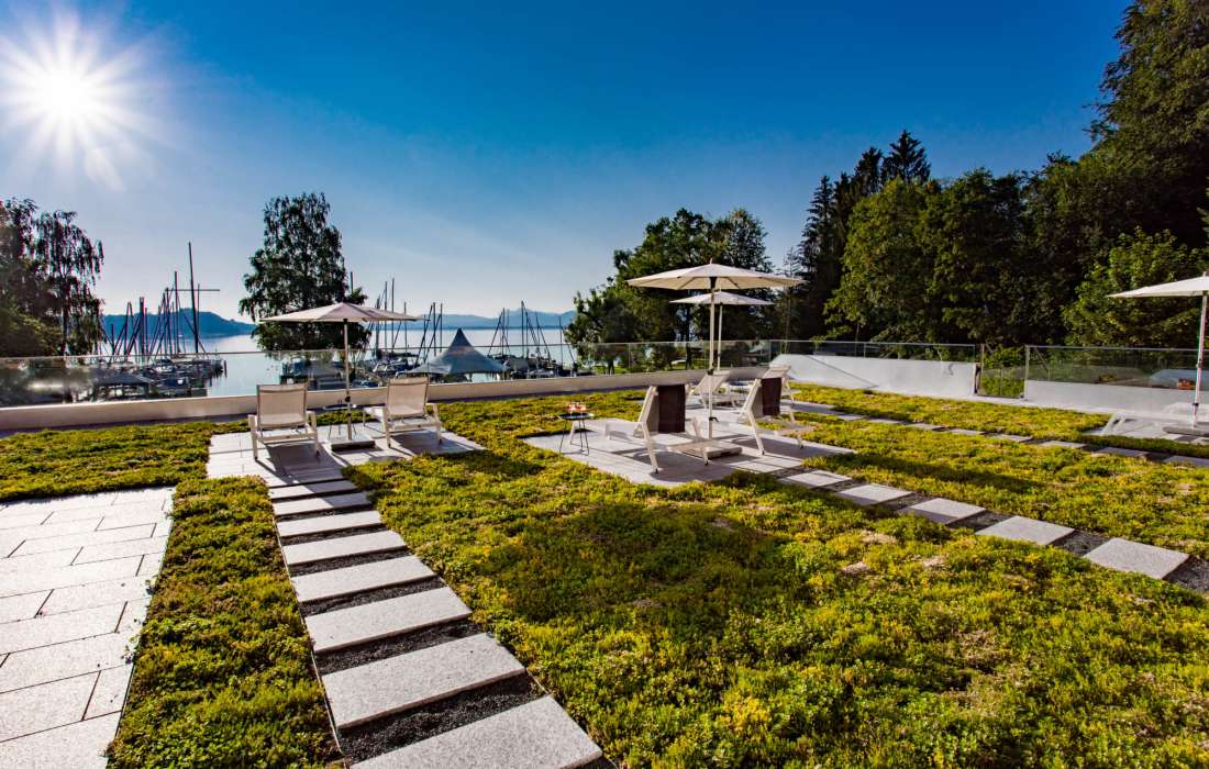 Direkt am Ufer des Chiemsees gelegen, besticht das Yachthotel Chiemsee mit seiner Traumlage und seinen außergewöhnlichen Möglichkeiten. Mediterranes Flair versprüht der eigene Yachthafen und bildet zusammen mit den Segelbooten, dem glitzernden See und den nahe grüßenden Bergen des Chiemgaus eine filmreife Kulisse.