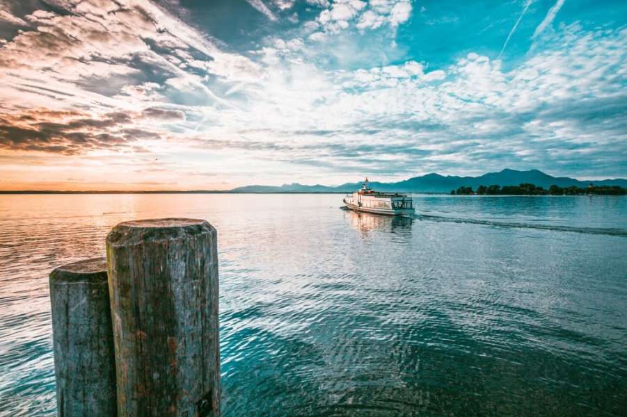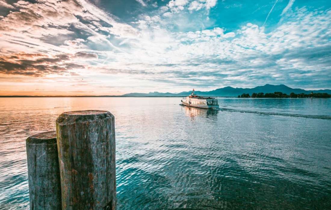 Starten Sie mit einem Schiff der Chiemseeflotte direkt vom Hotelsteg aus, um auf der bezaubernden Fraueninsel die Trauung im Münster zu vollziehen und das Panorama der Alpenkette auf der halbstündigen Überfahrt zu genießen!