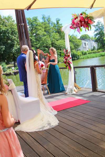 Dazu begleite ich mich dann eben auf der Harfe, der Gitarre oder singe sie zum Halbplayback, je nachdem wie es passt.