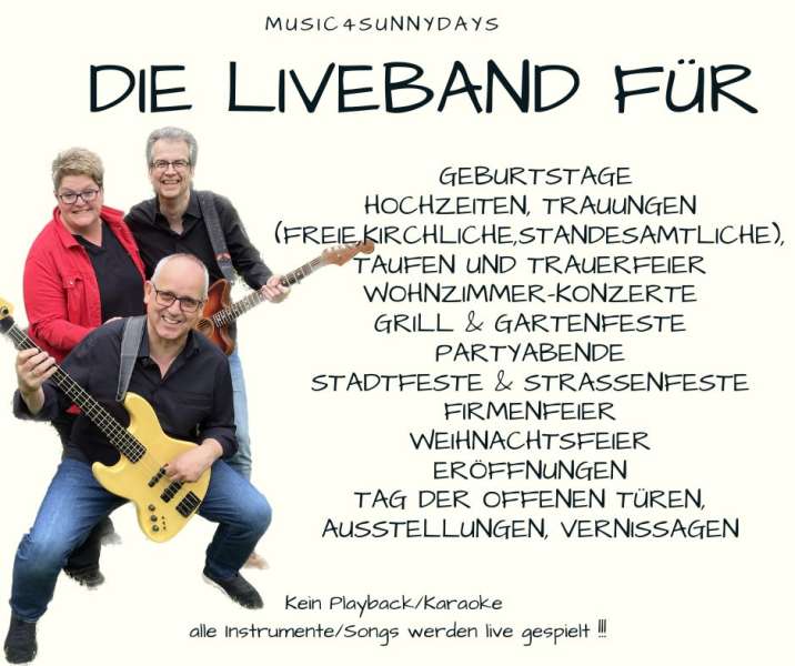 Music4sunnydays steht für echte, qualitativ hochwertige Livemusik für viele Anlässe.