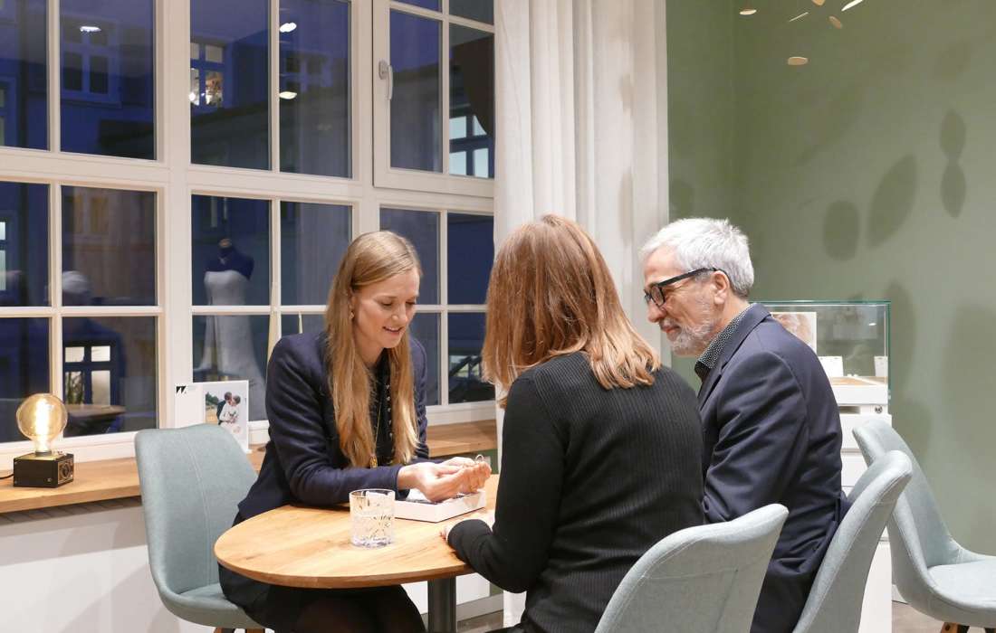 In ruhiger, angenehmer Atmosphäre nehmen wir uns bewusst Zeit für Sie. Bei uns stehen persönliche Beratung, mit Zeit für Ihre Ideen und Wünsche und höchste Qualität im Vordergrund. Wir führen eine sehr schöne umfangreiche Auswahl an Verlobungsringen, Trauringen, Memoireringen sowie Brautschmuck – mit Designs, die berühren, sich jederzeit gut anfühlen und Materialien, die ein Leben lang Freude bereiten.