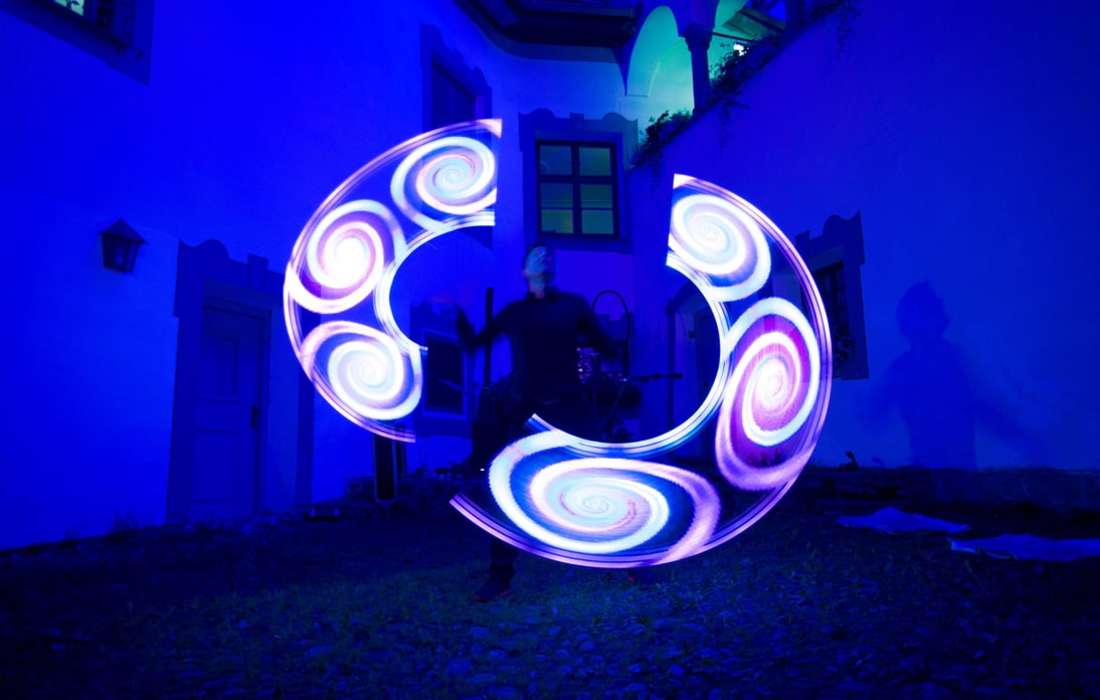 Feuerartistik, Jonglage und Spezial- Effekte verbinden bewegte Feuermuster und mitreißende Musik zu einer stimmungsvollen Feuershow.
