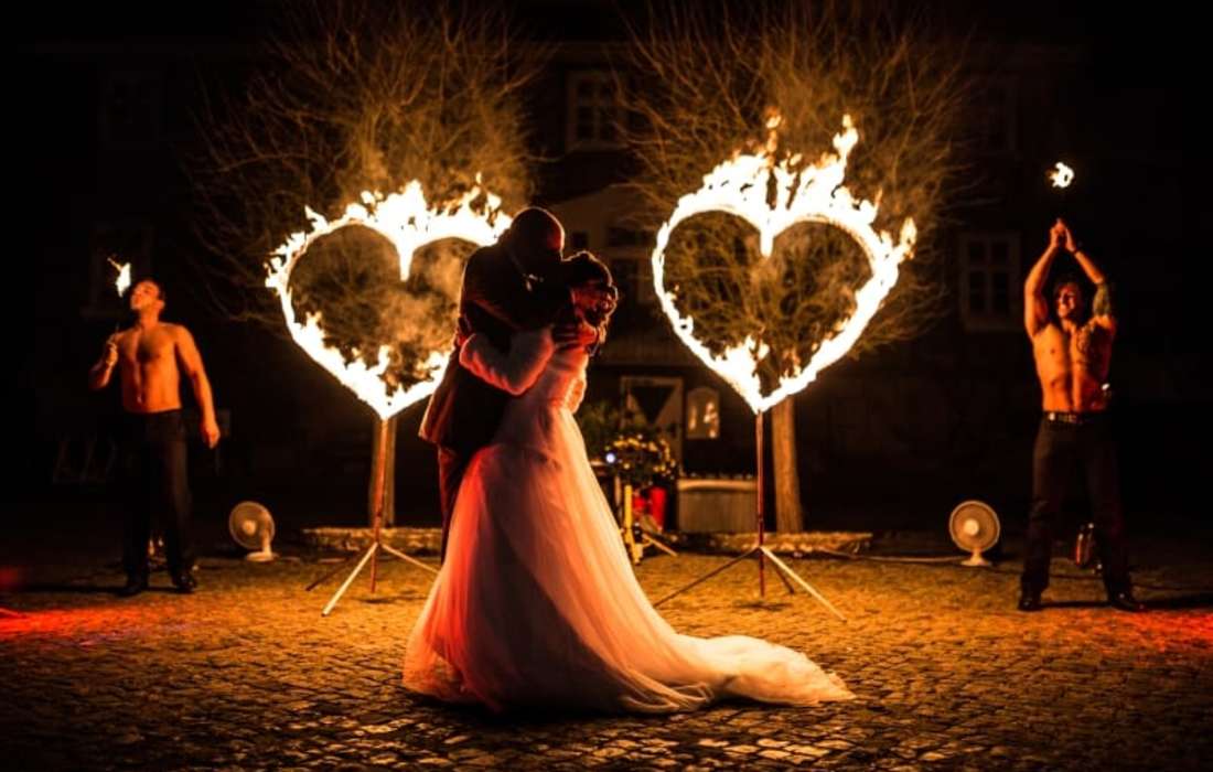 Die Feuershow Experten sind ihre Profis für eine gelungene Feuershow zur Hochzeitsfeier. Wir möchten Ihnen eine klassische und emotionale Feuershow anbieten, welche sich von allen anderen Anbietern klar abhebt. Romantische Momente sind auf eine Hochzeit ein Muss, mit unserer Hochzeitsfeuershow schaffen Sie den perfekten Abschluss der Hochzeitsfeier, denn wir brennen uns förmlich in die Gedanken aller Anwesenden ein.