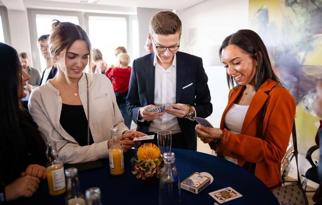 "Timo hat die Gäste komplett mit Witz und Charme in seinen Bann gezogen! Die Gäste waren fasziniert und begeistert von seinen Zaubertricks mit den Karten an den einzelnen Tischen!"