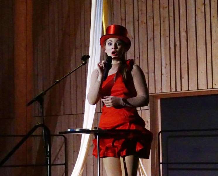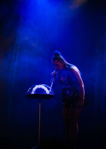 Artistin Miss Edith zeigt einen ihrer vielen Showacts um vom Abendessen in den Tanzteil über zu leiten:
